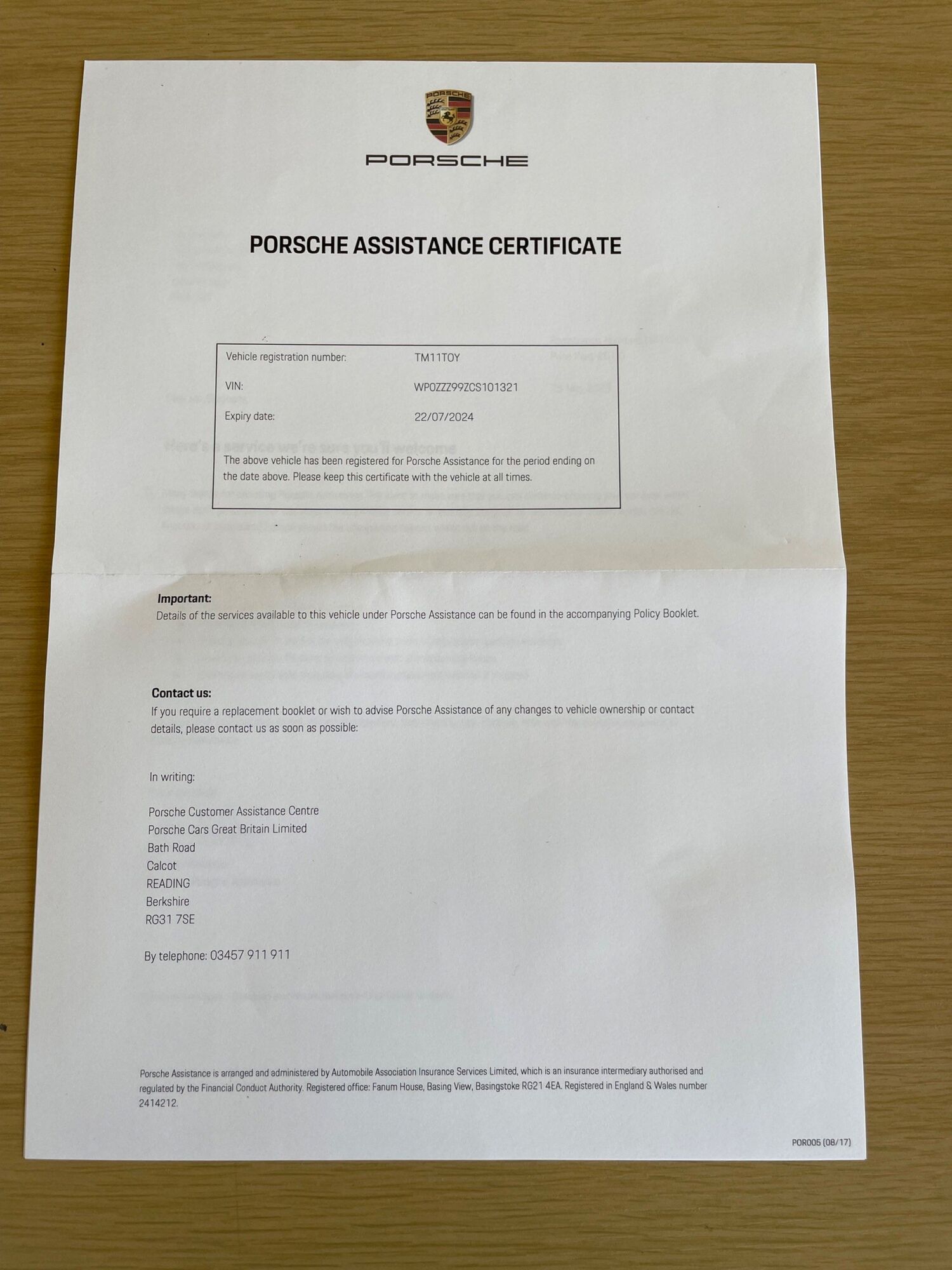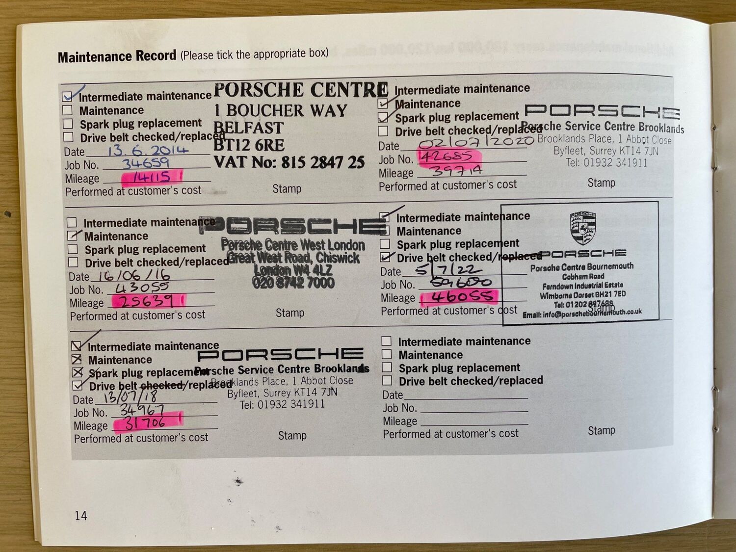 Porsche Side Impact Protection - POSIP, Power Assisted Steering with Variable Steering Ratio, Power Release Button for Engine Release, Power Release Buttons for Luggage Compartment, Pre-Tensioners and Force Limiters at Front, Preparation for ISOFIX Child-Seat Mounting with Switch-Operated Front Passenger, Preparation for Roof Transport System, Reading Lights, Rear Lights and Third Brake Light and Indicators - LED, Rear Reflector Integrated in Rear Section, Roof Lining in Alcantara, Seats - Split-Folding Rear, Seats - Sports, Separate Auxiliary Lights in the Front End with Indicators - LED, Sound Package Plus, Speakers x9, Sport Button on the Centre Console, Sports Steering Wheel with Manual Fore-Aft and Height Adjustment, Steering Wheel - Smooth Finish Leather on Rim - Gear and Handbrake Levers and Door Handles, Storage Compartment in Each Door, Tailights - LED, Third Brake Light, Top Tinted Windscreen, Tyre Sealing Compound and Electric Air Compressor, Universal Audio Interface - AUX, Water-Repellent Coating on Side Windows, Welcome Home Lighting, Windscreen Washer System with Two Wiper Speeds and Heated Washer Jets, 12v Connector, 235 Watts Total Output, ABD - Automatic Brake Differential, ABS - Anti-lock Brake System, ASR - Anti Slip Regulation, Airbag - Driver, Airbag - Head, Airbag - Passenger, Airbag - Thorax in Seat Side Bolsters, Alarm System, Auto-Deployed Rear Spoiler, Automatic Air Conditioning, Automatic Headlight Activation including Welcome Home Lighting, Brake Calipers with Black Anodised Finish, CDR-31 Audio System, Central Locking with Remote Control, Clothes Hooks on Seat Backrests, Daytime Running Lights - LED, Deformable Front and Fear Aprons with Integral Alloy Bumpers Mounted on Impact Absorbers, Door Brakes with Three Rest Positions, Door Handles - Bow-type, Door Mirrors - Electrically Adjustable and Heated, Door Sill Guards - Model Designation Logo, Electric Parking Brake, Electric Windows - Lifts with One Touch Operation, Engine Immobiliser, Enhanced Porsche Stability Management - PSM, Extended Head Restraints Integrated into the Front Seats, Extra Storage Behind the Rear Seat Backrests, Footwell Illumination, Front Apron Moulding with Integral Air Intakes, Front Luggage Compartment Lid/Rear Lid and Doors in Aluminium, Gear Indicator in Rev Counter, Glove Compartment - Lockable, Green Tinted Heat-Insulating Glass, Headlight Cleaning System, Heated Rear Screen, Illuminated Vanity Mirrors in Both Sun Visors, Instrument Cluster with Central Rev Counter and 4.6in TFT VGA Display, Instrument Dials and Cluster in Black, Integrated Cluster of Five Round Instruments, Integrated Interior Lighting Concept with Stepless Dimming, Key Remote Luggage Compartment Lid Release, LED Reading Lights Orientation Ignition Lock and Vanity Mirror Lighting, Leather Interior - Black, MSR - Motor Slip Regulation, McPherson-Strut Suspension with Anti-Roll Bar at Front, Model Designation in Front of Gear-PDK Selector, Multi-Link Suspension with Anti-Roll Bar at Rear, PCM - Porsche Communication Management - Include Navigation, PVTS - Porsche Vehicle Tracking System, Pad-Wear Sensors on Each Brake Pad, Passive Pedestrian Protection System, Porsche Logo and Model Designation on Rear Lid High Gloss Chromed