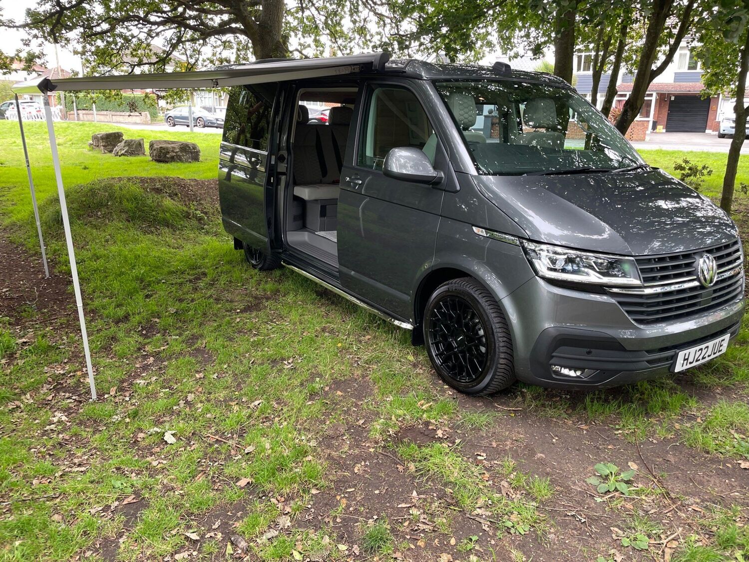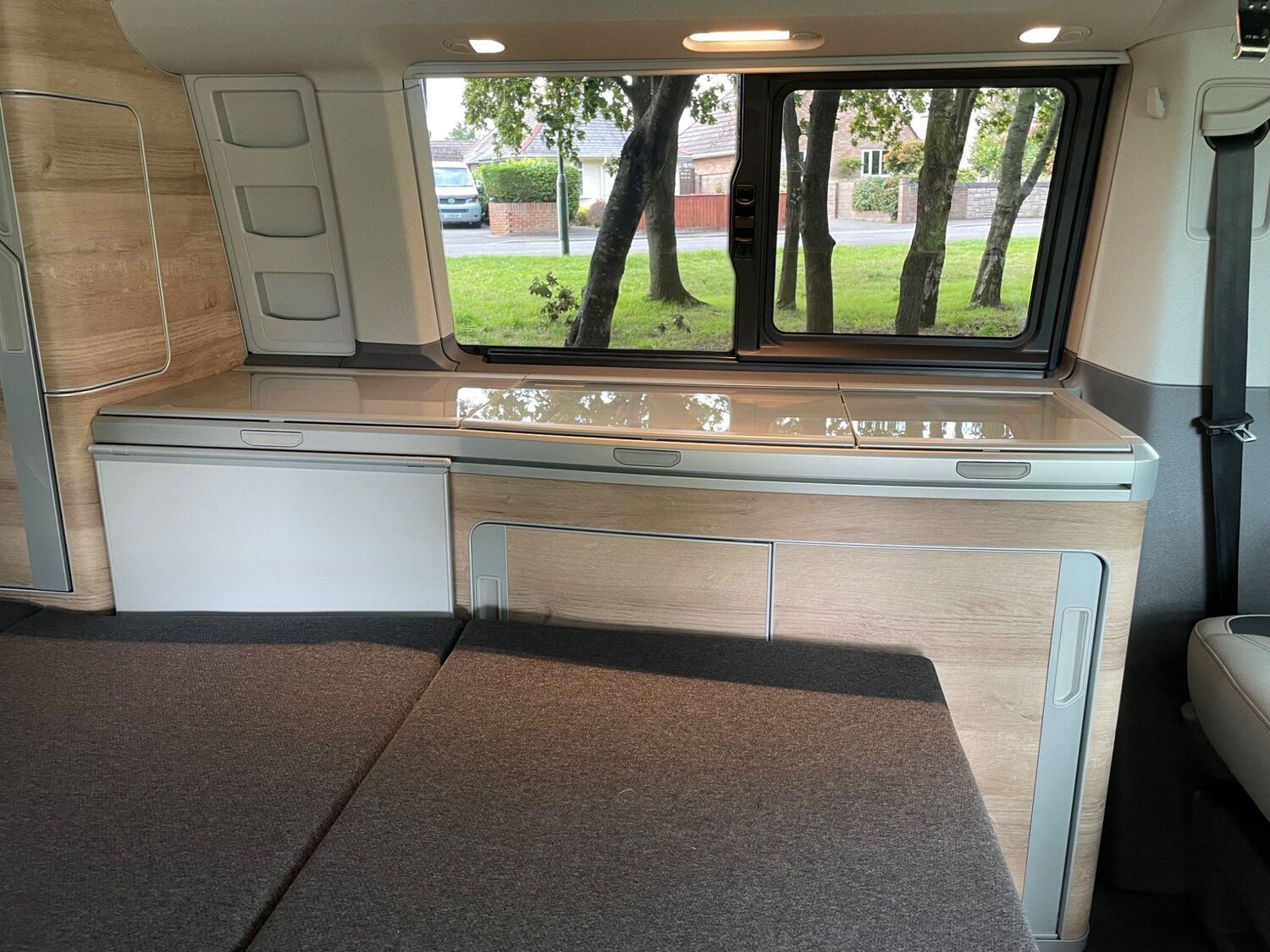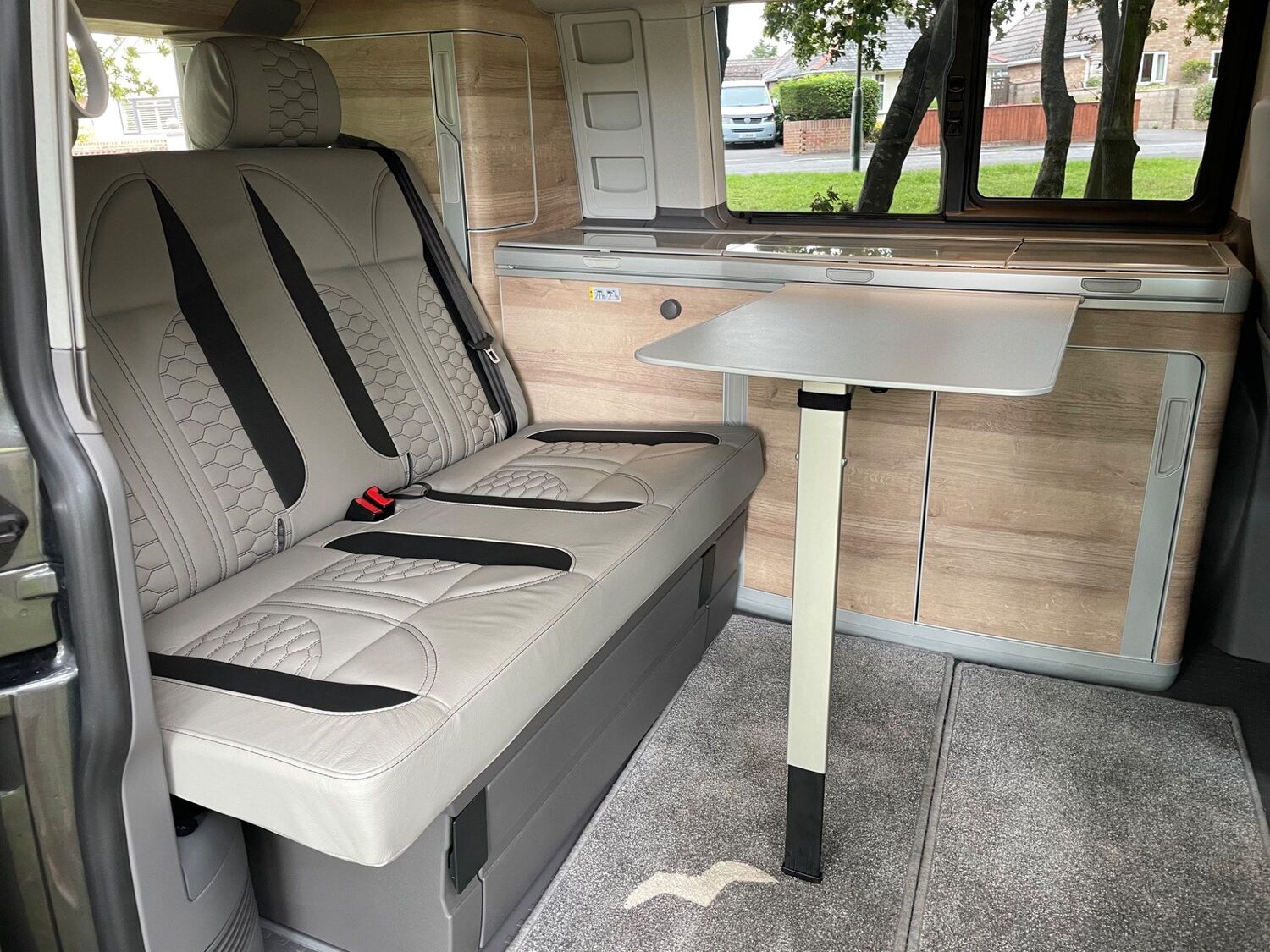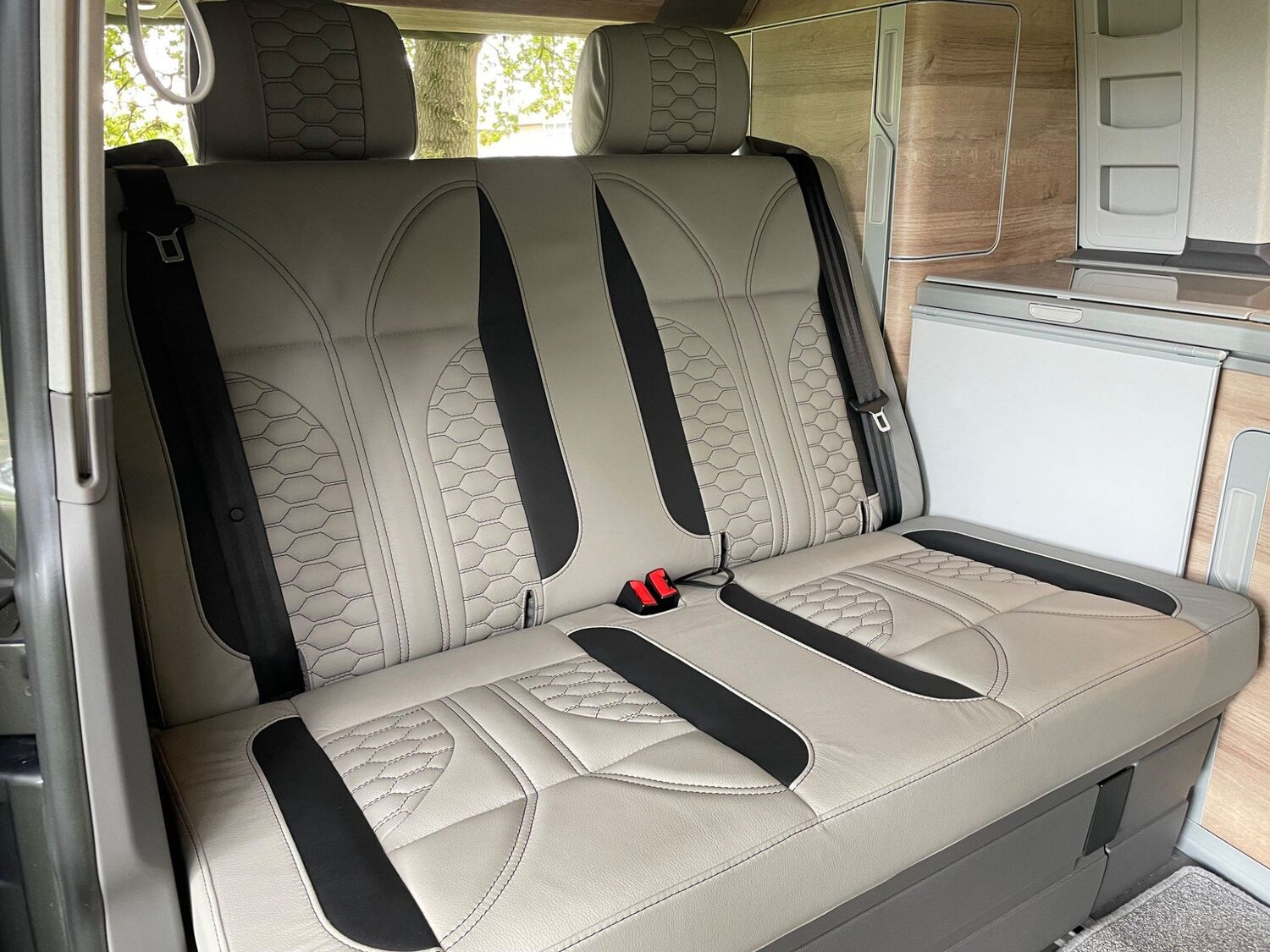 APPLE CAR PLAY, FULL CUSTOM GREY AND BLACK HONEYCOMB VW EMBLEM EMBOSSED LEATHER SEATS, DISTANCE CONTROL CRUISE CONTROL, DETACHABLE TOW BAR WITH ELECTRICS, PRE HEATING ,HEATING OVERIDE, REAR SPOILER, Warranty, ALPINE MUSIC SPEAKERS, CHROME SIDE BARS, SUPERMETAL 18 INCH CELL ALLOY ROAD WHEELS, METALLIC PAINT, Tow bar and electrics, Wind Out Awning, Rear Seat belts, Swivel Passenger Seat, Sink and Drainer, Swivel Drivers Seat, Removable carpets, Spare wheel, Reversing Sensors, Power Steering, Overcab Bed, Manufacturers Warranty, Mains electric, Leather Upholstery, Internal Window Blinds, Hob, Gas Hob, Fridge, Free Standing Table, Flyscreen and Blinds, External 240v, FRONT SENSORS, Electric Windows, Electric Mirrors, Double Beds, Cruise Control, Central Locking, Bluetooth, Blinds, Awning, Alloy Wheels, Air Conditioning, ABS